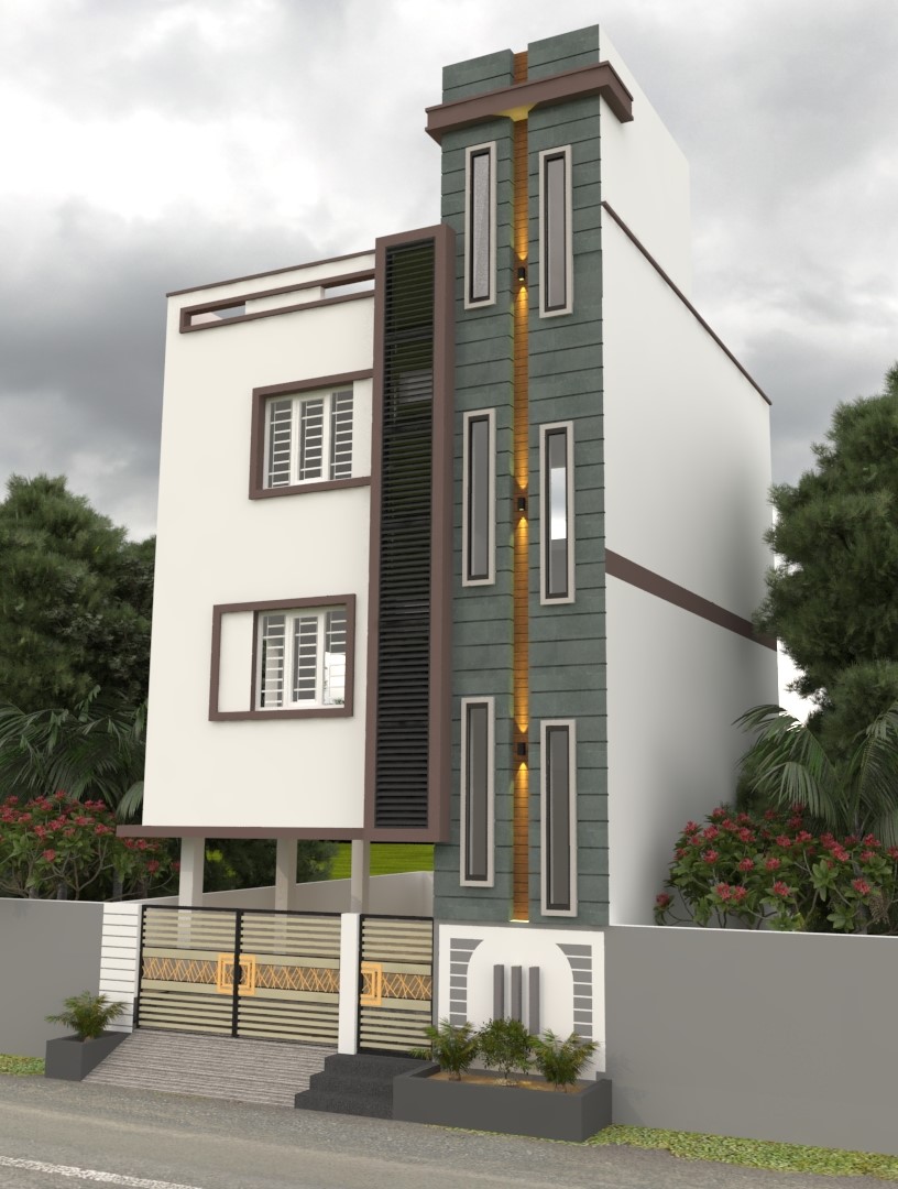 Mr. Siva Sankar and family have completed their luxury, expandable G+2 villa at their plot in Madipakkam, Chennai. The home features a 1 BHK unit on the ground floor and a 2 BHK unit on the first floor. The building is finished with a beautiful elevation, excellent ventilation, and superior overall detailing.