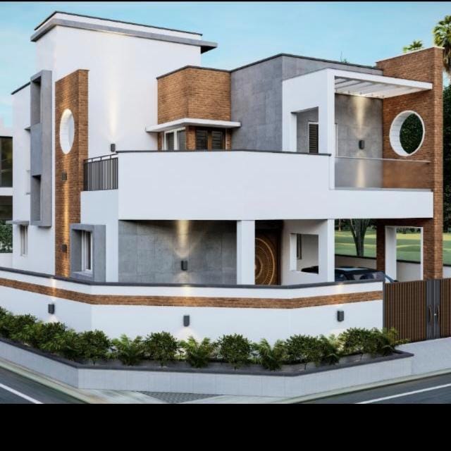 Mr. Dharmaraj and family are constructing a luxury G+2 duplex villa at their plot in TVS Hamlet Layout, Karapakkam, Chennai. This spacious home features 4 bedrooms with attached bathrooms, a well-planned living area, kitchen, and multiple balconies. The design includes a terrace garden and a dedicated home theatre on the terrace floor. The villa will also feature a 4–5 passenger machine-room-less elevator from OTIS and a beautifully crafted elevation and premium home interiors
